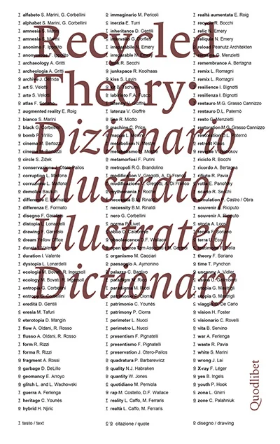 Un libro interessante e utile quello curato da Sara Marini e Giovanni Corbellini, 600 pagine di parole che danno forma e costruiscono una grammatica per un pensiero teorico. Le definizioni toccano sfere diverse ed esplorano il concetto di riciclo, da punti di vista differenti.